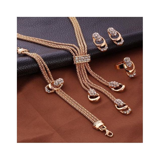 Collier + Bracelet + Boucles D'Oreilles + Bague - 4 Pièces - Or
