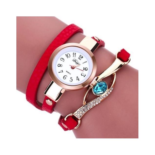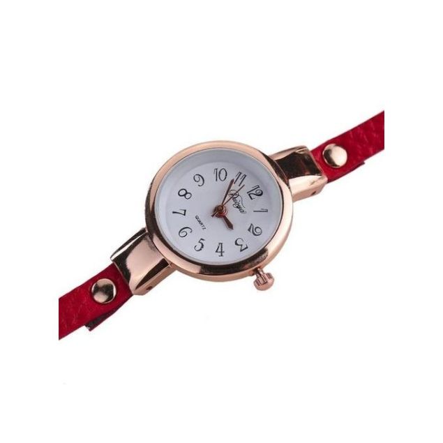 - Modèle: Montre A Quartz Bracelet En Simili Cuir Pour Femme - Rouge