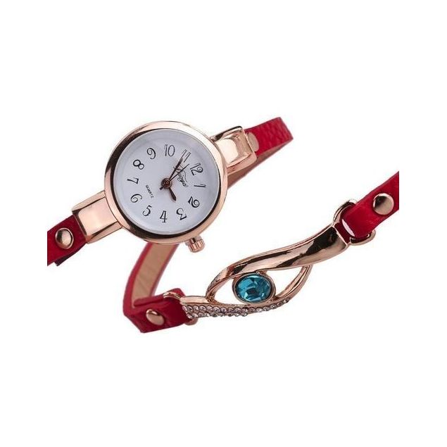 Montre - bracelet quartz 2 en 1 chic tendance ROUGE