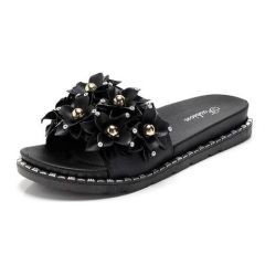 Sandales Plates à Bout Ouvert Pantoufles antidérapantes pour Femmes Détails Détail: 1. La forme des perles et des fleurs est la décoration la plus caractéristique de cette chaussure, l'effet est un style féerique décent  et élégant. 2. Style simple de couleur unie, peut...