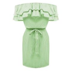 Mini Robe de soirée à volants pour femmes, épaules dénudées, sans bretelles vert Détails Détails du produit: 1. Le design de ce double col est vraiment étonnant, il donne à un vêtement une sensation de superposition unique, et on refuse d'être monotone en portant une jupe en été. 2....