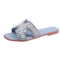 Sandales de plage plates Pantoufles Femmes - Bleu Détails Cible : Adulte Style : Version coréenne Matériau supérieur : Artificiel Motif : Couleur solide Occasion : Plage Technologie de la semelle : Chaussures en viscose Forme du talon : Talon plat Fiche technique...