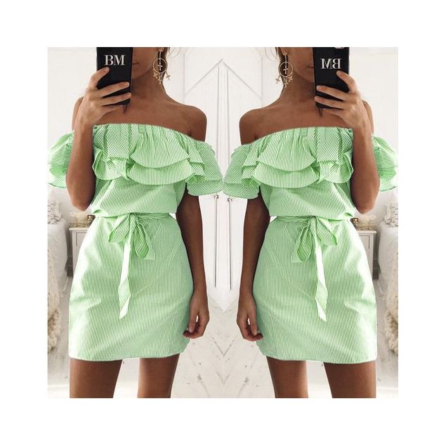 - Modèle: SKNZ030009-IC-一字肩条纹-绿