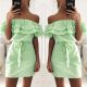 Mini Robe de soirée à volants pour femmes, épaules dénudées, sans bretelles vert