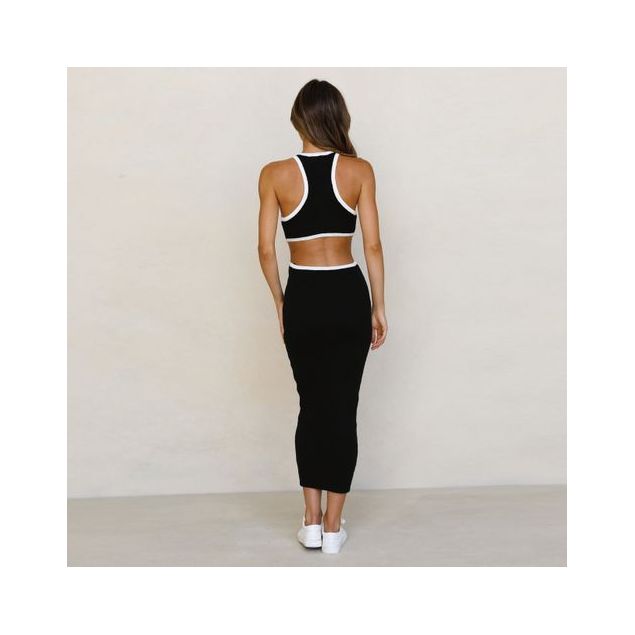 Round Neck Pullover Tight Cutout Open Back Sexy Racer Dress Bag Hip Ribbed Midi Dress