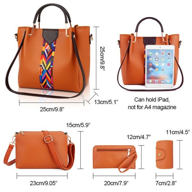 - 【Taille】 ① Sac à main: 25x13x25cm; ②Sac de messager: 23x6x15cm; ③Embrayage: 20x12cm; ④Emballage de la carte: 11,5x7cm