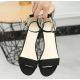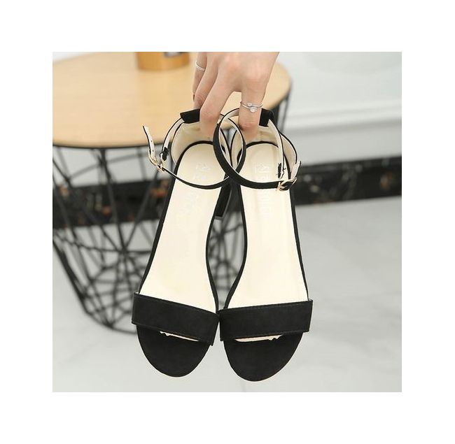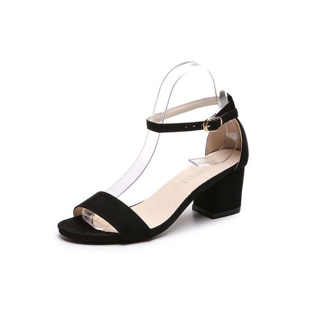 Sandales en daim à talons hauts et bout ouvert pour femmes, chaussures Sexy, lanière à boucle - Noir
