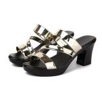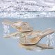 Pantoufles pour femmes, or, herringbone, hauteur du talon 6cm, haut en Pu synthétique de haute qualité, semelle en caoutchouc de talon de cristal. Le talon est de 6cm de haut et mince en haut. Taille: 37 38 39 40 41. Séchage rapide, respirable, équilibré et léger.