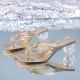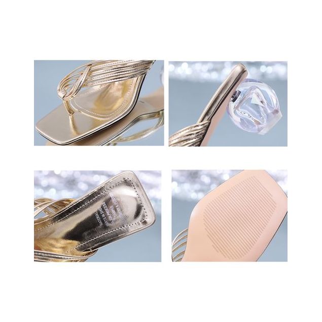 Sandales tressées à bande étroite pour femmes, chaussures d'été à talons hauts, pantoufles à talons de cristal - Or