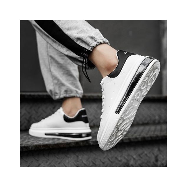 - Ceci est une sneaker décontractée à la mode en cuir blanc..