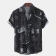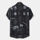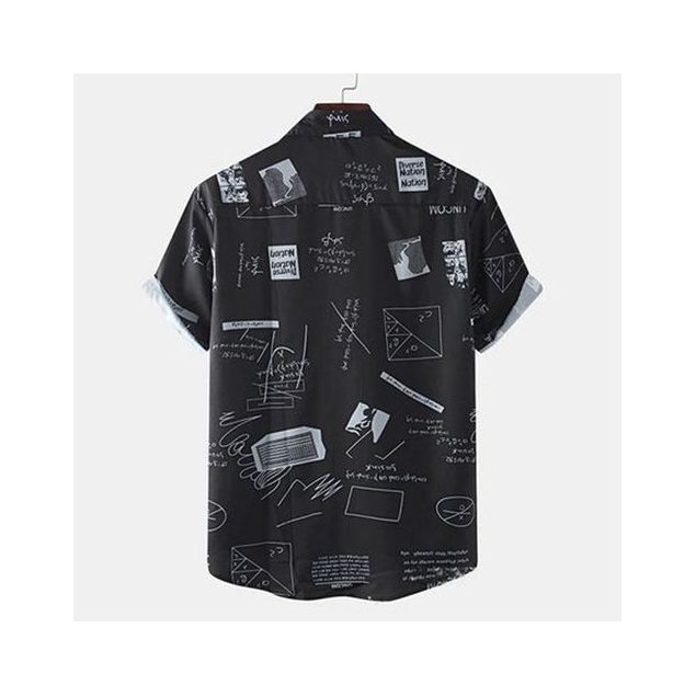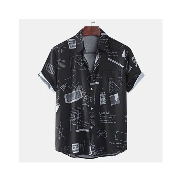 Chemise à manches courtes col rabattu pour homme, vêtement à la mode, décontracté, imprimé, avec boutons - NOIR