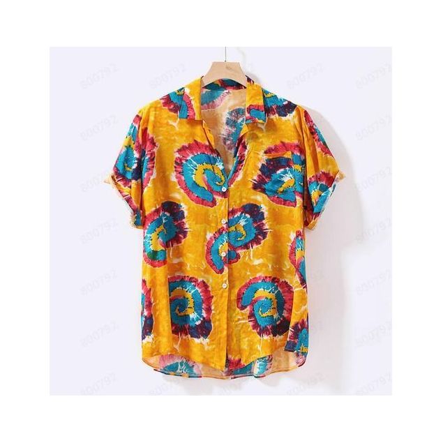 Chemise hawaïenne à fleurs pour hommes, manches courtes, séchage rapide, décontractée, boutonnée, vêtements de plage - Multicolore