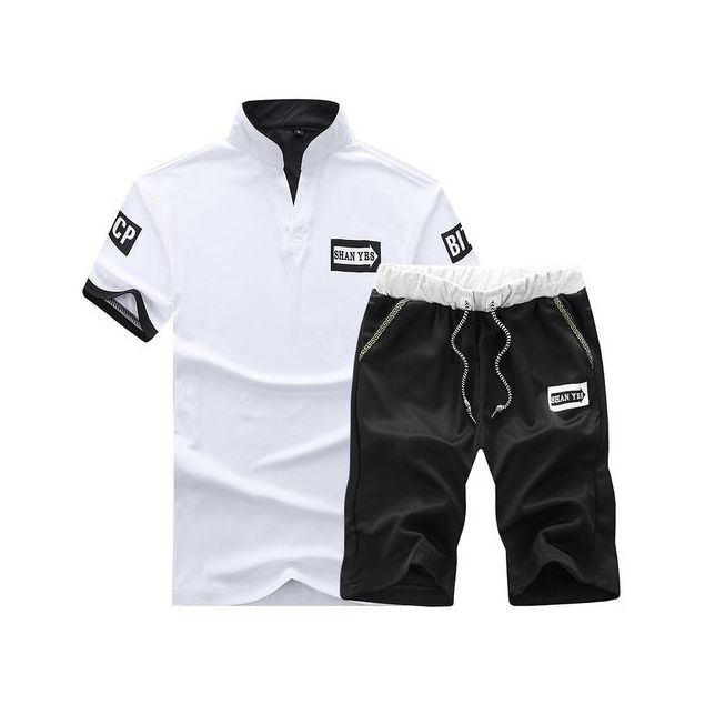 Ensemble deux pièces pour hommes, t-shirt à manches courtes, Top court + Short, vêtements de sport Blanc/Noir
