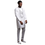 Tenue ample pour homme. ce modèle est pensé et conçu pour les hommes aimant l'élégance. Très pratique pour les cérémonies et les fêtes .le tissu est du coton pur. Couleur blanc manche longue.
