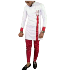 Détails . Ensemble Tunique Homme Manche Longue de couleur rouge /blanc. Fait en coton glacé sans broderie extraordinaire . Disponible en taille L et XL . Propre et pratique pour vos différentes prestations  Fiche technique PRINCIPALES CARACTÉRISTIQUES . Ensemble...