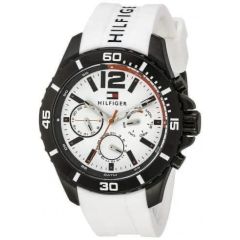 Montre Analogique :  Multifonction à Quartz pour Homme avec Bracelet en Silicone Blanc Cadran blanc mat avec fonction date / jour Bracelet blanc en silicone avec rayures de course Résistance à l'eau 5 ATM (50m) Épaisseur du boîtier 12,2mm Mouvement multi-yeux Marque...