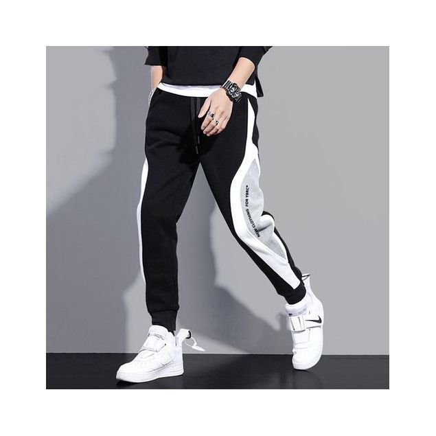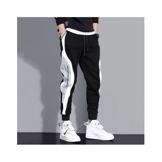 Pantalon de jogging gris pour homme, survêtement décontracté, pour l'extérieur, pour la maison, avec cordon de serrage - Noir
