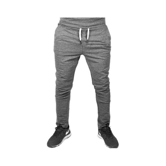 Pantalon de survêtement pour hommes, taille élastique, couleur unie, Slim, pour Sport - Gris