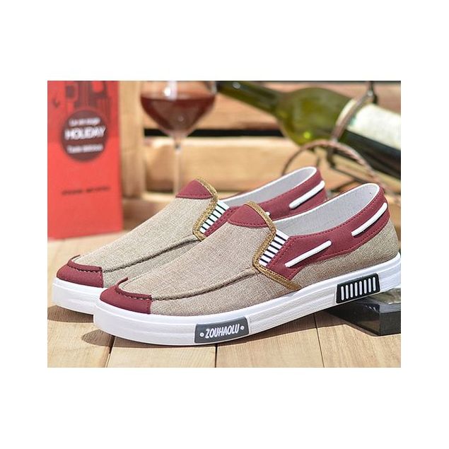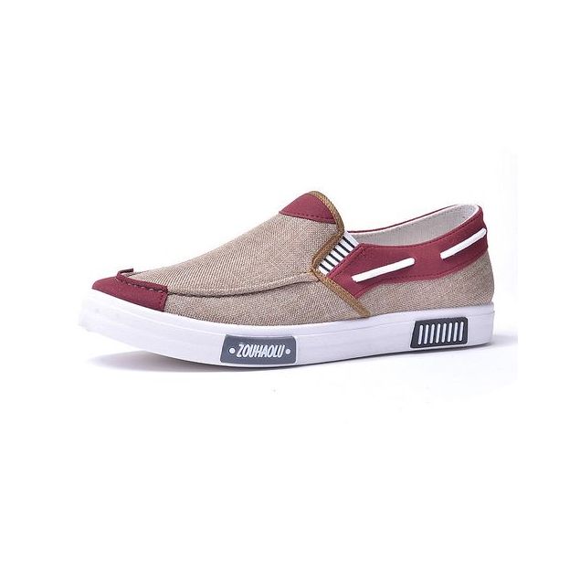 Sneakers Baskets Pour Homme paire plate baladeuse -BL66- Kaki/rouge