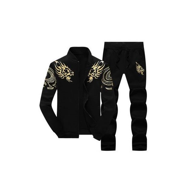 Survêtement d'extérieur sans capuche pour homme, ensemble 2 pièces veste + pantalon - Noir