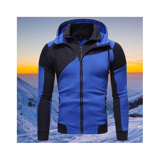 Sweat-shirt surdimensionné à fermeture éclair pour homme, sweat-shirt à capuche - Bleu
