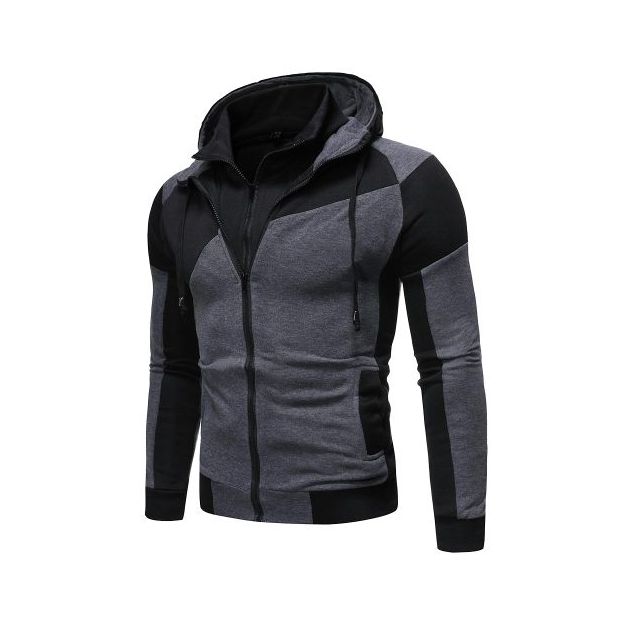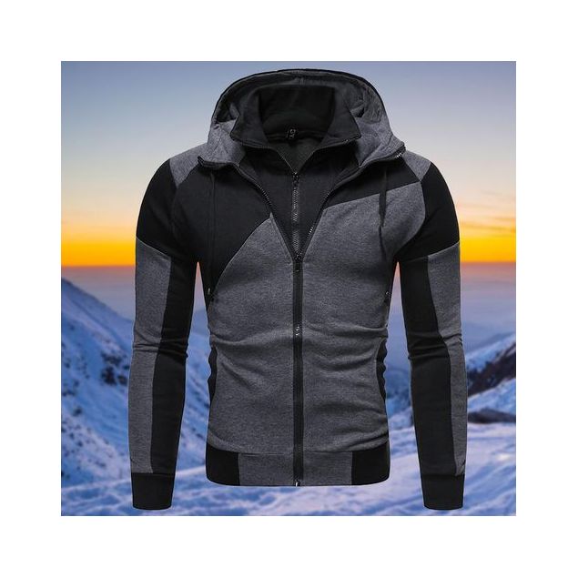 Sweat-shirt surdimensionné à fermeture éclair pour homme, sweat-shirt à capuche - Noir
