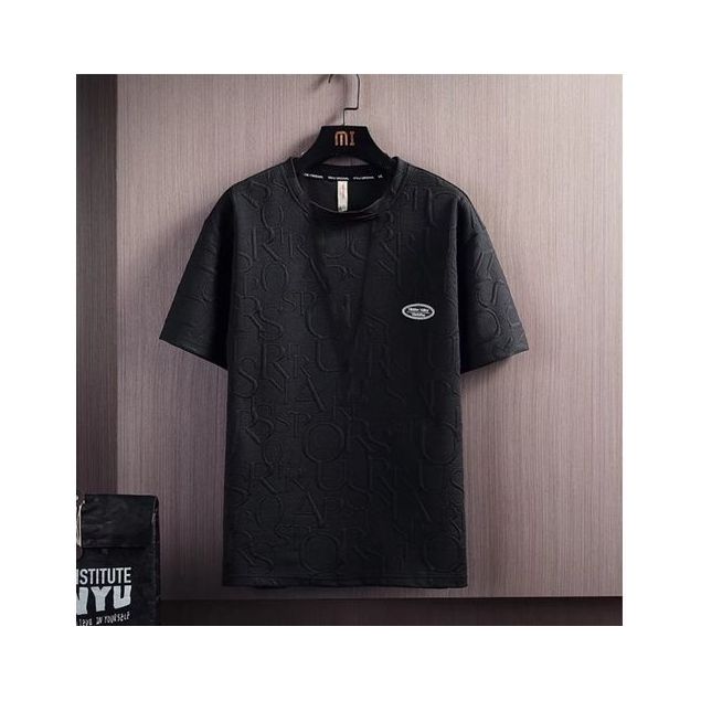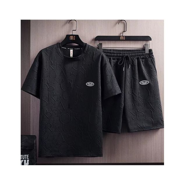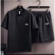 Ensemble de survêtement pour hommes, couleur unie, col rond, cordon de serrage, manches courtes, lettres imprimées, T-shirt, Short, costume de sport, 2 pièces