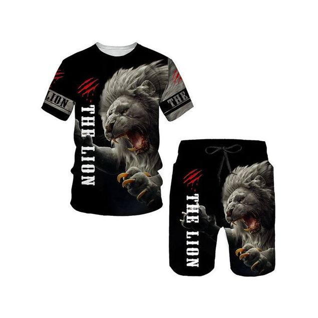 Ensemble deux pièces pour hommes, t-shirt et Short, motif Lion imprimé en 3D, décontracté - été