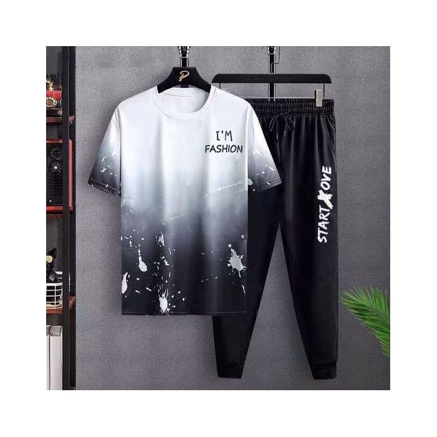Ensemble T-shirt et pantalon pour homme, 2 pièces, ample, survêtement décontracté, dégradé de couleur