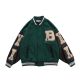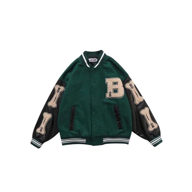 Veste de Baseball de Style Hip-Hop pour Homme, Manteaux Brodés en Fourrure, Vêtements en Os avec Lettres Patchwork - Vert