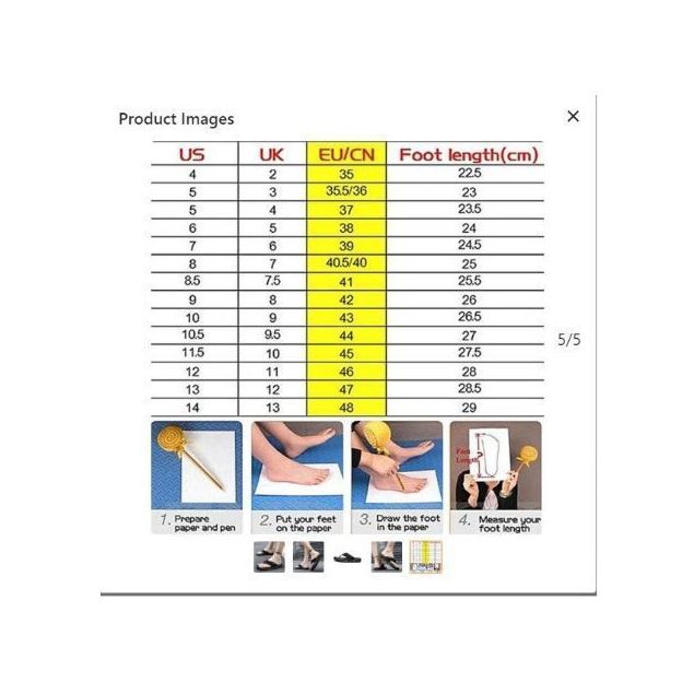 Conseils : cette taille de chaussures est la taille standard chinoise, veuillez choisir 1 taille plus grande que votre taille habituelle.