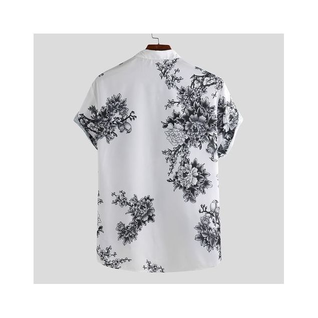 Chemise De Plage Hawaïenne Ample à Manches Courtes Pour Homme D'été (Gris/Blanc)