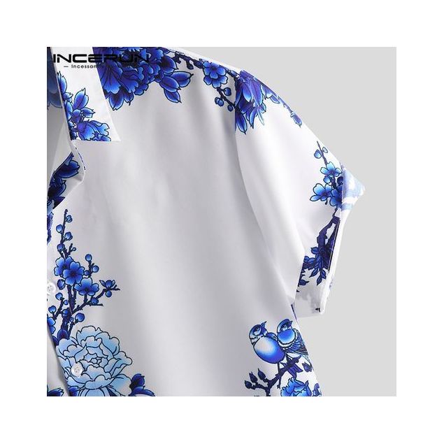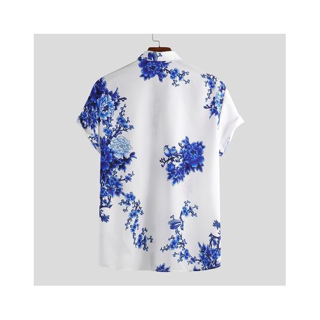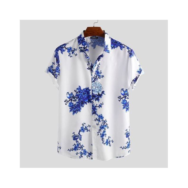 Chemise hawaïenne décontractée à manches courtes pour hommes, chemise style hawaïenne - Bleu