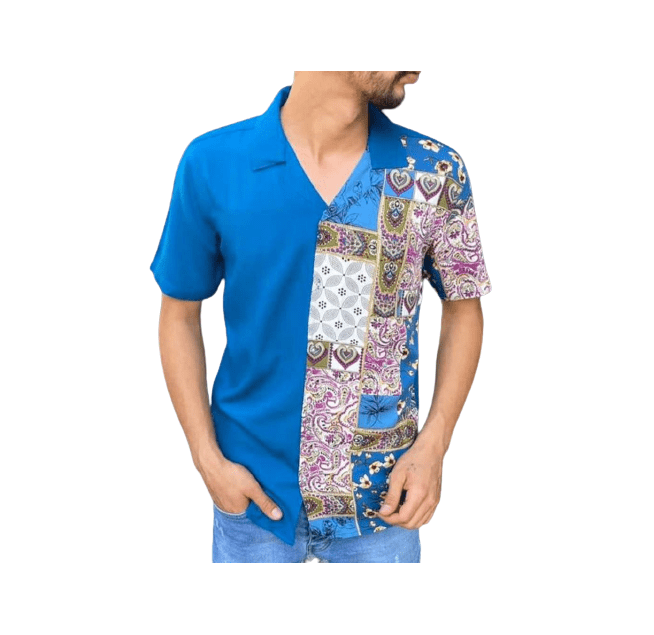 Chemise Hawaïenne funky décontractée boutonnée à manches courtes pour homme Unisexe - Bleu