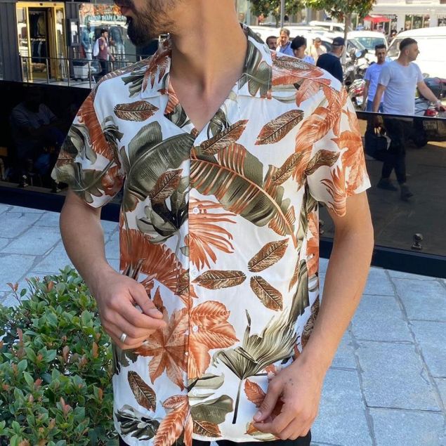 Chemise Hawaïenne funky décontractée boutonnée à manches courtes pour homme Unisexe - Marron