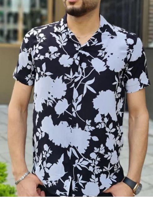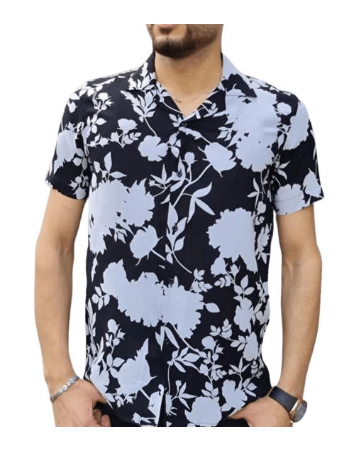 Chemise Hawaïenne funky décontractée boutonnée à manches courtes pour homme Unisexe - Noir-Blanc