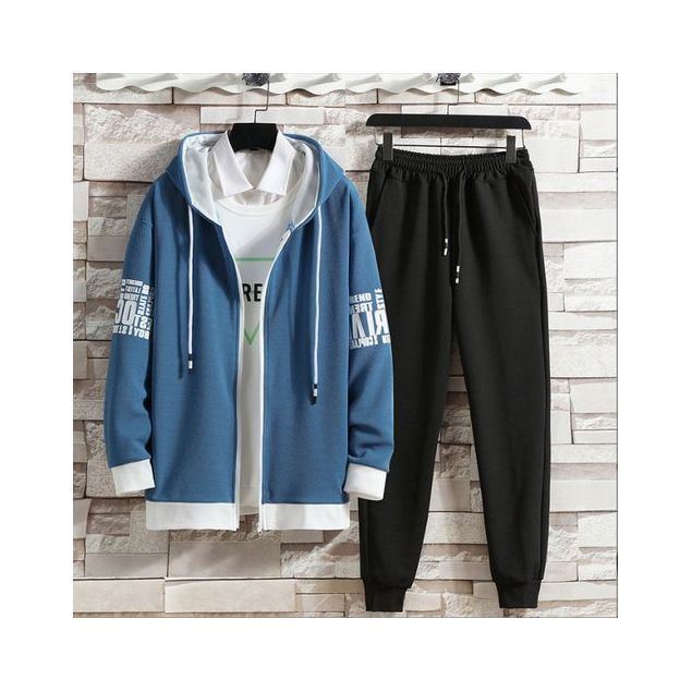Ensemble de vêtements pour hommes, Style japonais, manteau Long + taille élastique Bleu/Noir