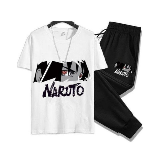 Ensemble deux pièces pour hommes, tee-shirt + pantalon Long, décontracté - Noir/Blanc