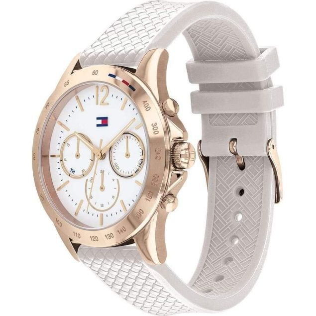 Caractéristique principale:- 100% neuf avec étiquette et de haute qualité ;- Résistant à l'eau 3ATM/30M (ne prend pas en charge la douche, la natation et la plongée);- Affichage du jour et chronographe minutes/secondes (trois sous-cadrans de travail) ;- Boîtier en alliage de zinc de qualité ;- Bracelet de montre en cuir de qualité ; Spécification (approximative):- Diamètre du boîtier : 47 mm- Épaisseur du boîtier : 13,7 mm- Largeur de bande : 24 mm- Longueur totale : 245 mm- Poids net : 100g Emballage inclus:- 1 x montre Tommy Hilfiger - 1 x boîte Tommy Hilfiger ,