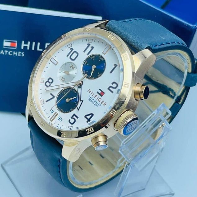 Montre Analogique : Multifonction à Quartz pour Homme avec Bracelet en cuir Bleu ciel
