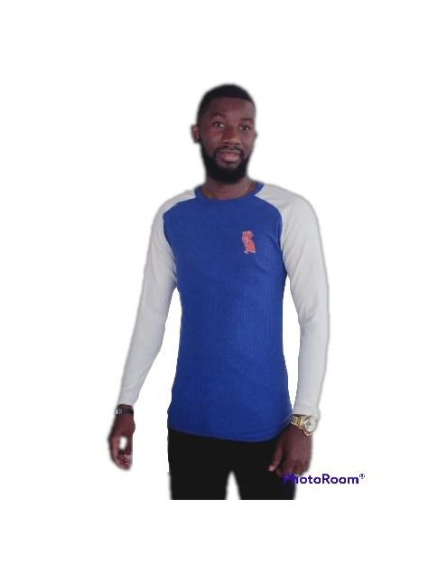 100% coton manche lounge en couleur bleue et blanche avec logo rouge
