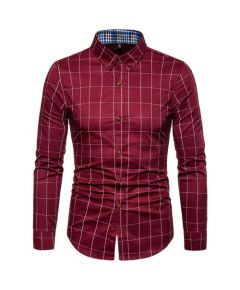 Chemise à carreaux pour hommes, manches longues, col carré, ample - Rouge Détails  Chemise Homme Longues-Rouge vin, Confortable , respirable et élégant. Sensation lisse et confortable, tissu délicat. L'ajustement est durable et sans retenue.  Style  décontracté...