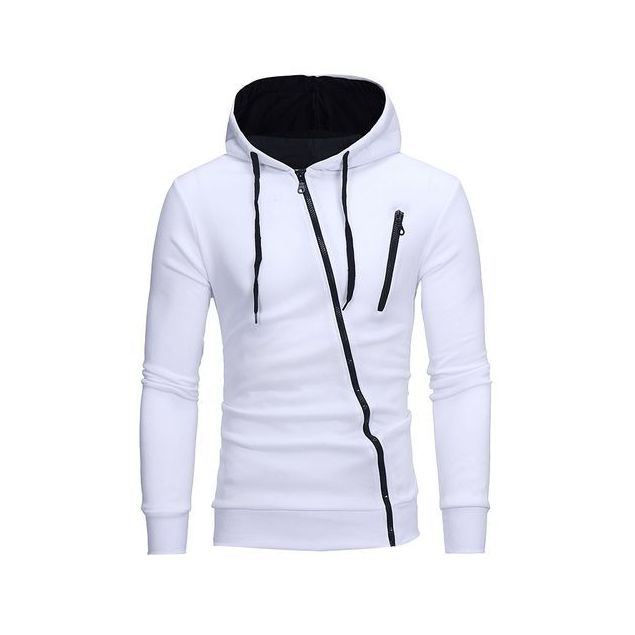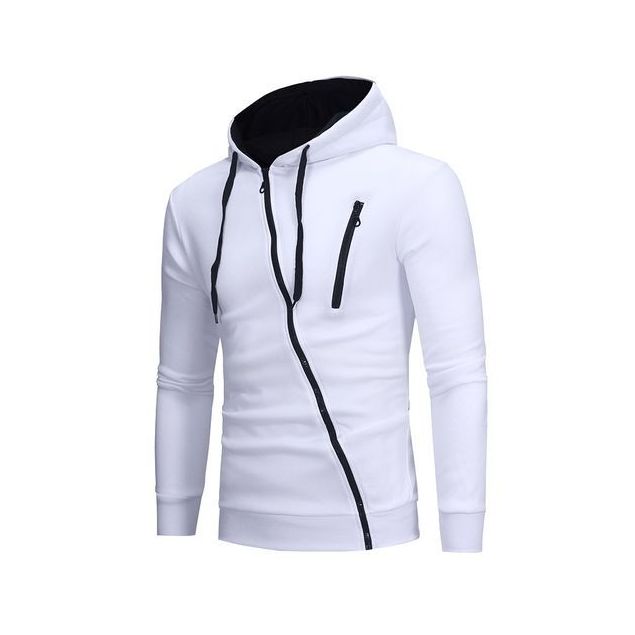 Pull A Capuche Pour Homme - Blanc Description : - Zip Oblique sur le devant, c'est à la mode que vous aurez envie de le porter. Matériel: polyester Style : mode Poids: 0,446 kg Contenu du colis: