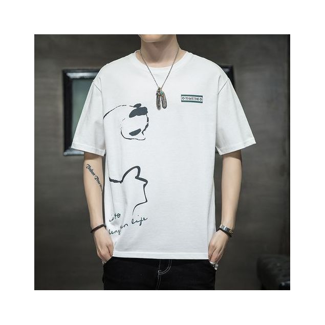 T-Shirt à manches courtes pour hommes, vêtement d'été, ample, à motif de dessin animé - Blanc