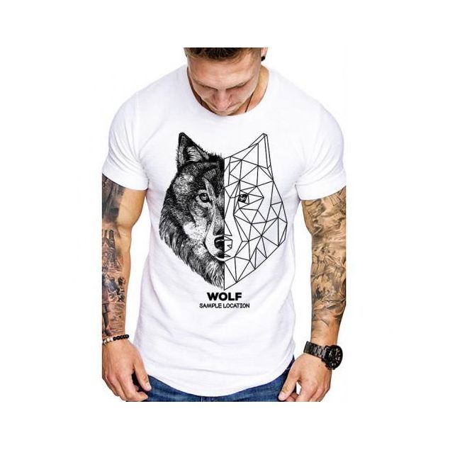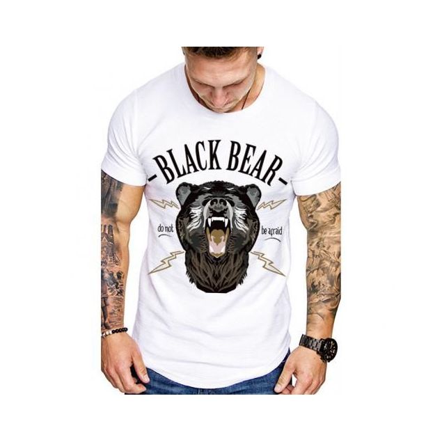 T-shirt col rond à manches courtes pour hommes, T-shirt décontracté à la mode avec impression 3D blanc