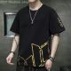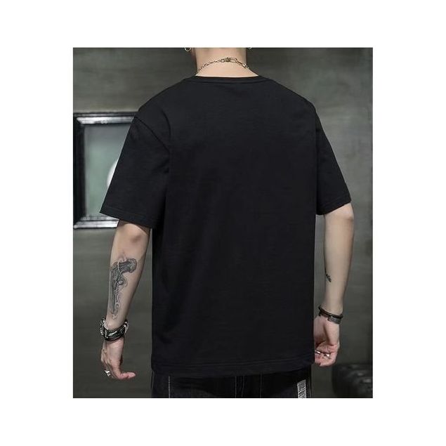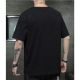 T-shirt en coton à manches courtes pour homme, surdimensionné, décontracté, à rayures - Noir