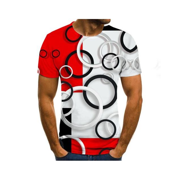 T-shirt manches courtes col rond pour homme, estival et décontracté, avec cercle imprimés en 3D