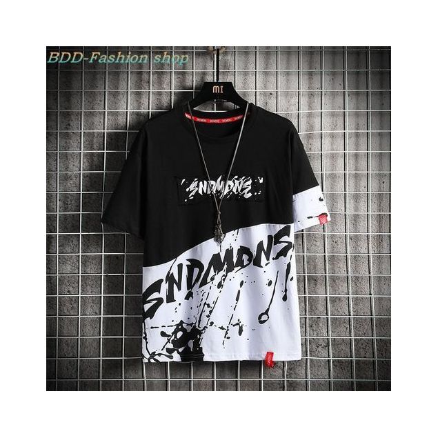 T-shirt manches mi-longues pour homme, Streetwear, décontracté - Noir