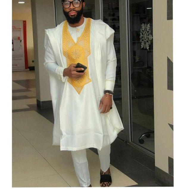 3 pièces, Tunique pour hommes, grande taille, avec broderie, coupe Slim