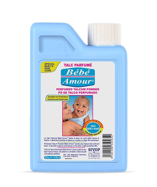 Le talc parfumé BEBE AMOUR laisse la peau de votre bébé douce et fraiche. Il absorbe l’humidité et laisse sur la peau un léger film protecteur.